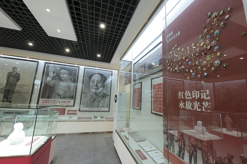 《德善園毛澤東紀(jì)念展》根據(jù)展廳面積,精心挑選了七類收藏珍品:(一)毛澤東傳記、(二)毛澤東詩詞、(三)毛主席語錄、(四)毛澤東著作、(五)毛主席畫像、(六)毛主席瓷像、(七)毛主席像章。
